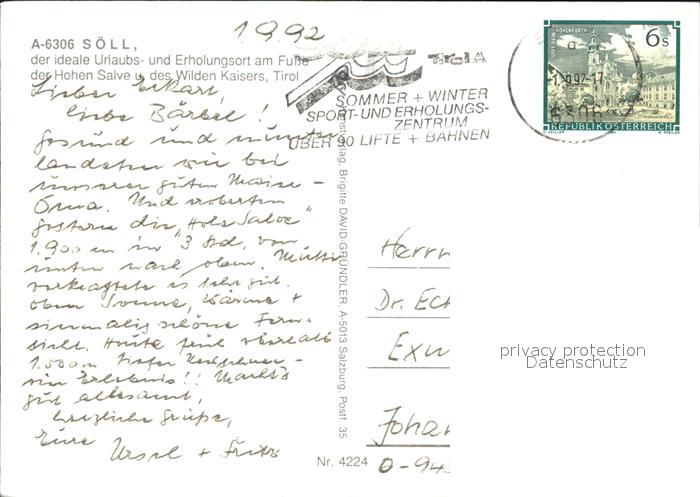 72535454 alte Postkarte Soell Tirol Panorama mit Hohen Salve und Wilden Kaiser postalisch gelaufen Erhaltung siehe scans [AndreD76 kt121box] KatCode: 11390335070526