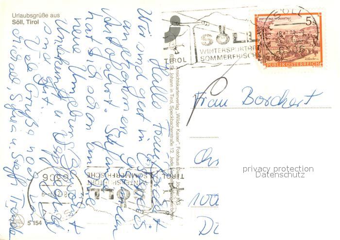73629028 alte Postkarte Soell Tirol Panorama mit Kirche postalisch gelaufen Erhaltung siehe scans [WerneD78] KatCode: 11390335070526