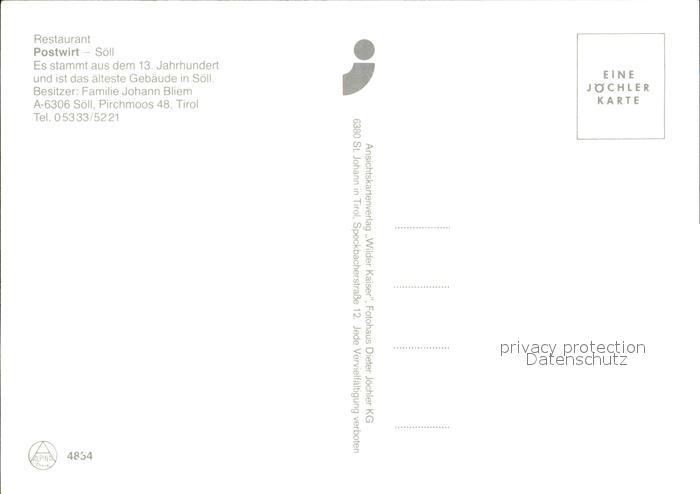 72377197 Soell Tirol Restaurant Postwirt postalisch nicht gelaufen Erhaltung siehe scans KatCode: 11390335070526