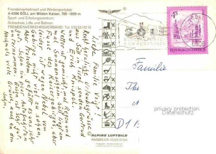 72824506 alte Postkarte Soell Tirol Sportzentrum Alpen Fliegeraufnahme postalisch gelaufen Erhaltung siehe scans [FriedD77] KatCode: 11390335070526