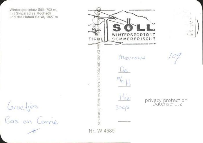 71974588 alte Postkarte Soell Tirol Wilden Kaiser Hochsoell Hohen Salve postalisch gelaufen Erhaltung siehe scans KatCode: 11390335070526