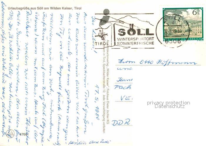 72905374 alte Postkarte Soell Tirol postalisch gelaufen Erhaltung siehe scans [NatalD47] KatCode: 11390335070526