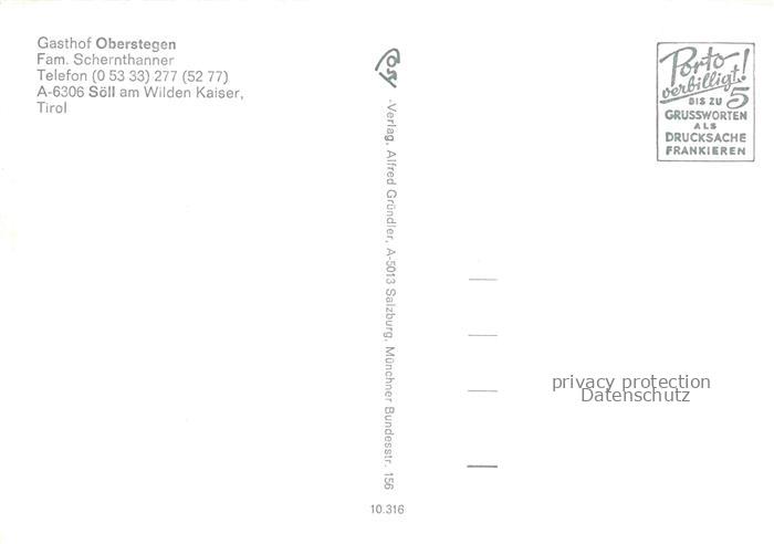 74110383 Soell Woergl Tirol AT Gasthof Oberstegen postalisch nicht gelaufen Erhaltung siehe scans [WerneD78] KatCode: 11390335070526