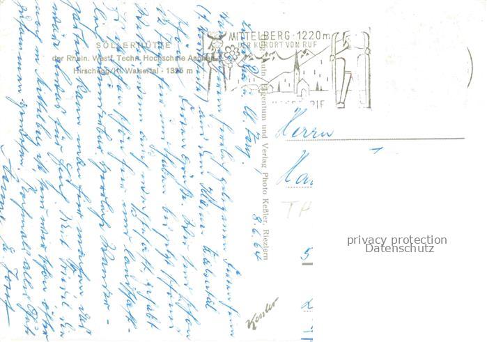 74097596 alte Postkarte Soellerhuette Hirschegg Kleinwalsertal Vorarlberg AT der Rheinisch Westfaelischen Techn Hochschule Aachen postalisch gelaufen Erhaltung siehe scans [WerneD78] KatCode: 11390