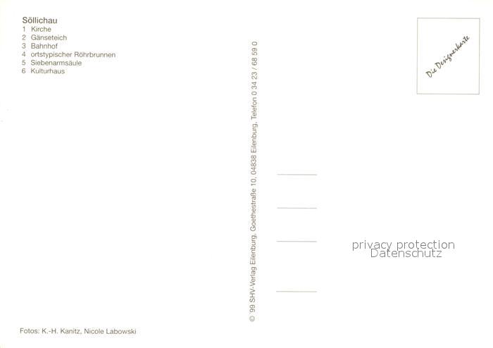 73228540 Soellichau Kirche Gaenseteich Bahnhof Rohrbrunnen Siebenarmsaeule Kulturhaus postalisch nicht gelaufen Erhaltung siehe scans [KathaD81] KatCode: 11110015091330