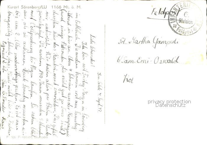 11648533 alte Postkarte Soerenberg LU postalisch gelaufen Feldpost Erhaltung siehe scans KatCode: 11470120375774