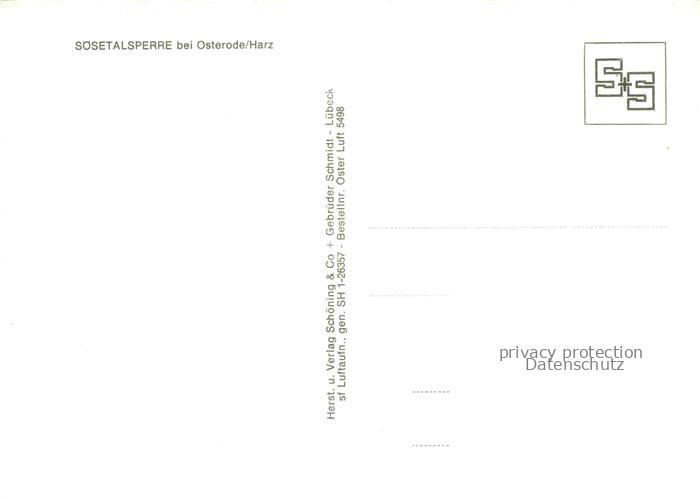 74095593 Soesetalsperre Osterode Harz Fliegeraufnahme postalisch nicht gelaufen Erhaltung siehe scans [WerneD78] KatCode: 11110003156011
