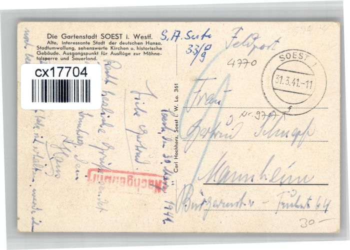 30725188 alte Postkarte Soest Arnsberg postalisch gelaufen KatCode: 11110005974040