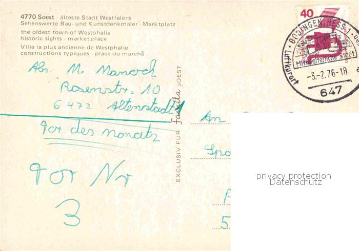 72906982 alte Postkarte Soest Arnsberg aelteste Stadt Westfalens Marktplatz Fachwerk postalisch gelaufen Erhaltung siehe scans [LiesaD40] KatCode: 11110005974040