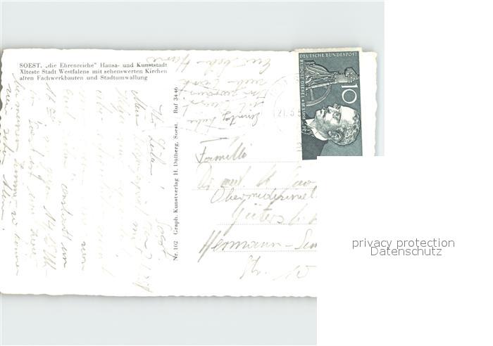 72181327 alte Postkarte Soest Arnsberg Blick ueber den grossen Teich zur Wiesenkirche postalisch gelaufen Erhaltung siehe scans KatCode: 11110005974040