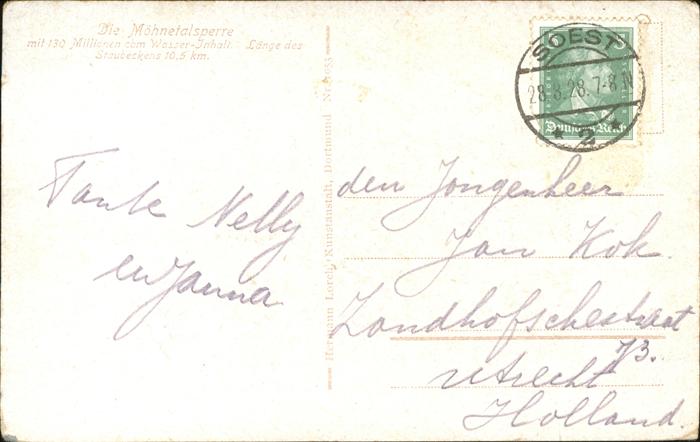 71495532 alte Postkarte Soest Arnsberg Moehnetalsperre Seehof postalisch gelaufen Erhaltung siehe scans KatCode: 11110005974040