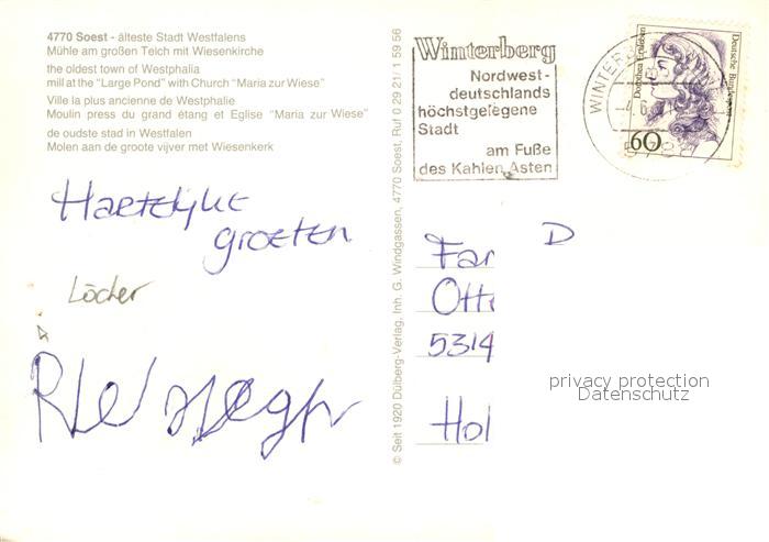 72930890 alte Postkarte Soest Arnsberg Muehle am grossen Teich mit Wiesenkirche postalisch gelaufen Erhaltung siehe scans [LiesaD40] KatCode: 11110005974040