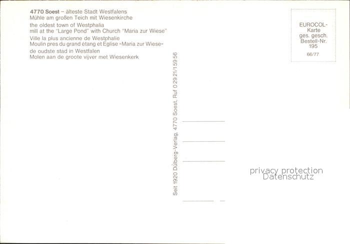 72398159 Soest Arnsberg Muehle am grossen Teich mit Wiesenkirche postalisch nicht gelaufen Erhaltung siehe scans KatCode: 11110005974040