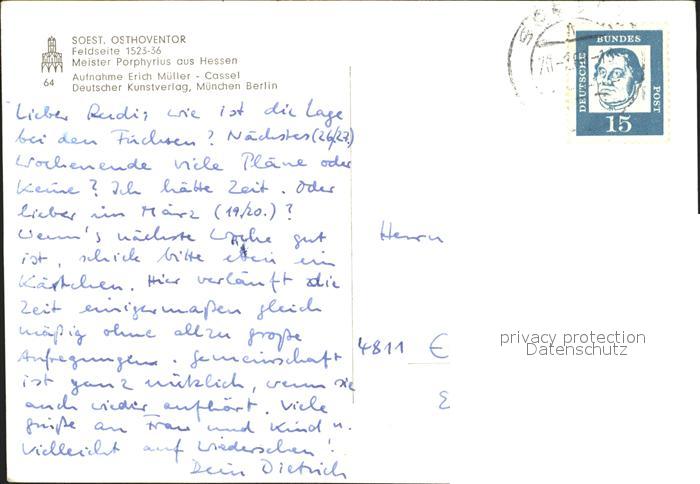 72250178 alte Postkarte Soest Arnsberg Osthoventor postalisch gelaufen Erhaltung siehe scans KatCode: 11110005974040