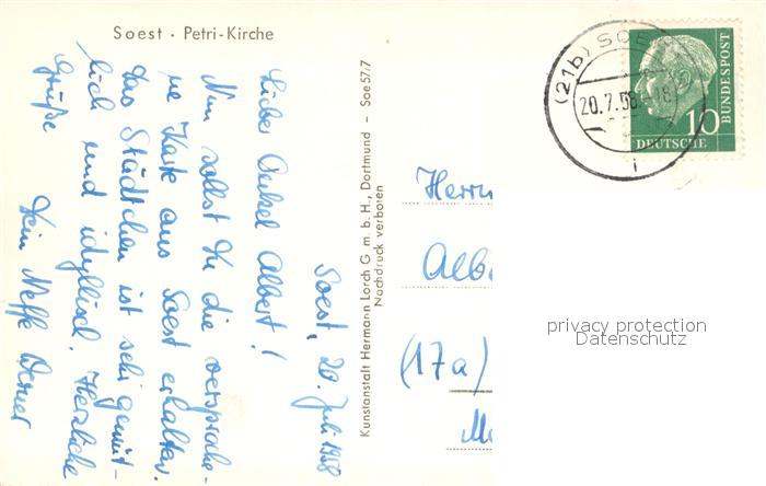 73624313 alte Postkarte Soest Arnsberg Petri Kirche postalisch gelaufen Erhaltung siehe scans [FriedD77] KatCode: 11110005974040