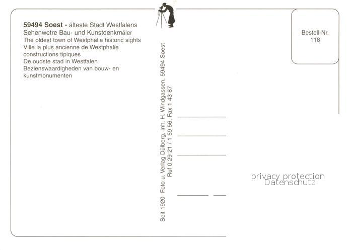 73177604 Soest Arnsberg Stadtpanorama Fussgaengerzone Altstadt Kirche Stadtmauer Turm Fachwerkhaeuser aelteste Stadt Westfalens postalisch nicht gelaufen Erhaltung siehe scans [FriedD77] KatCode: 11110005974040