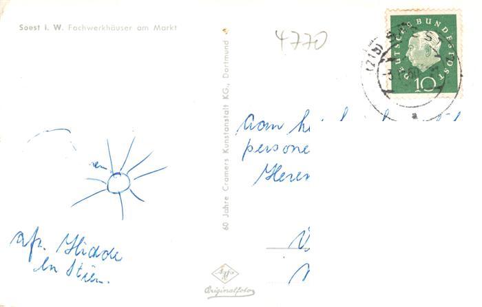 73914947 alte Postkarte Soest DE NRW Fachwerkhaeuser am Markt postalisch gelaufen Erhaltung siehe scans [FriedD77] KatCode: 11110005974040