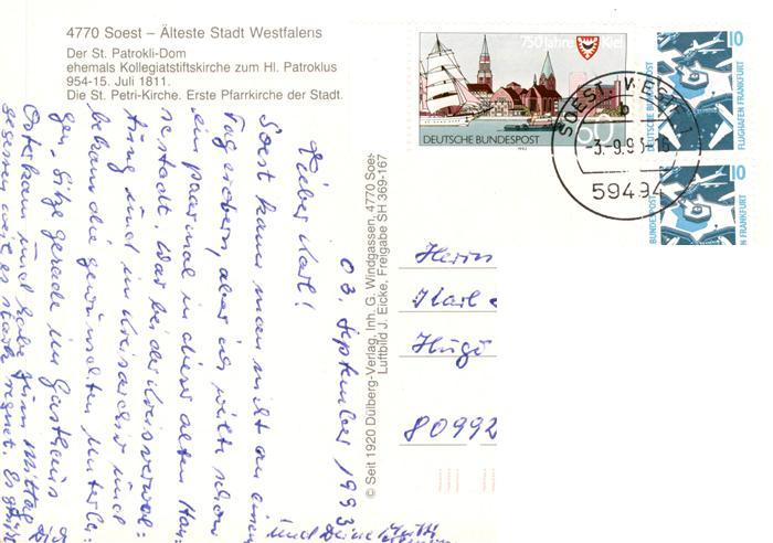 73897694 alte Postkarte Soest DE NRW Fliegeraufnahme mit St Patrokli Dom postalisch gelaufen Erhaltung siehe scans [FriedD77] KatCode: 11110005974040