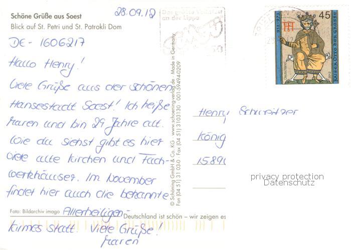 73754971 alte Postkarte Soest DE NRW Fliegeraufnahme mit St Petri und St Patrokli Dom postalisch gelaufen Erhaltung siehe scans [FriedD77] KatCode: 11110005974040