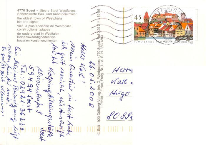 73897695 alte Postkarte Soest DE NRW Fliegeraufnahme postalisch gelaufen Erhaltung siehe scans [FriedD77] KatCode: 11110005974040