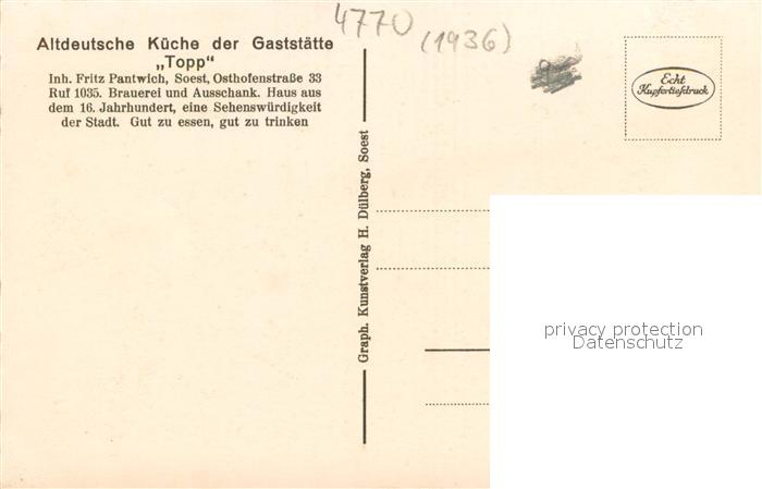 73703928 Soest DE NRW Gaststaette-Brauerei Topp Innen Stube postalisch nicht gelaufen Erhaltung siehe scans [LiesaD40] KatCode: 11110005974040