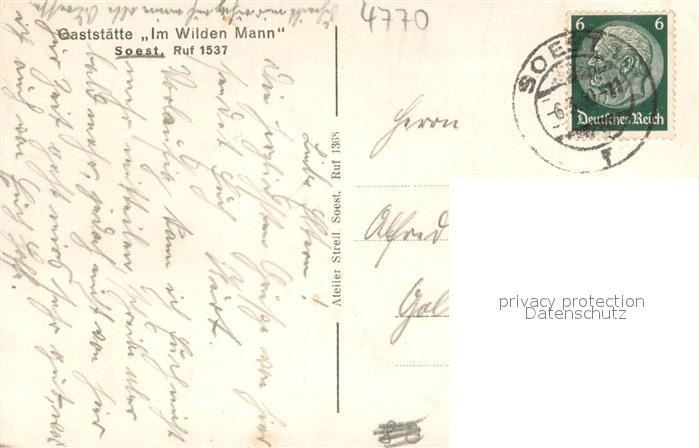 73703917 alte Postkarte Soest DE NRW Gaststaette Im Wilden Mann Stube Innen postalisch gelaufen Erhaltung siehe scans [LiesaD40] KatCode: 11110005974040