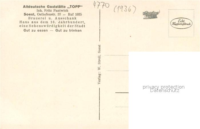 73703929 Soest DE NRW Gaststaette Topp Hansasaal postalisch nicht gelaufen Erhaltung siehe scans [LiesaD40] KatCode: 11110005974040