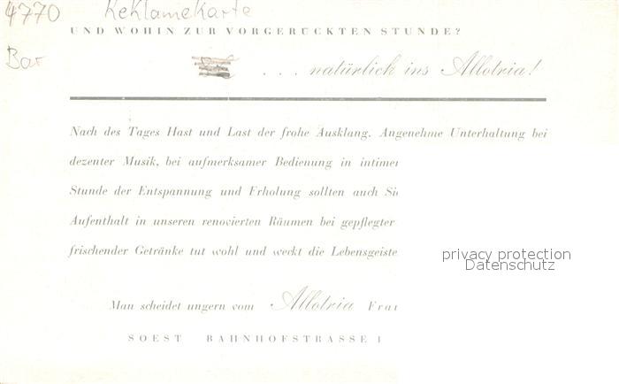 73703919 Soest DE NRW Hotel Allotria Bar Innen Reklame-Karte postalisch nicht gelaufen Keine Postkarte (siehe scan) Erhaltung siehe scans [LiesaD40] KatCode: 11110005974040