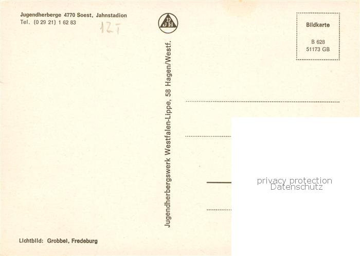 73871489 Soest DE NRW Jugendherberge Jahnstadion postalisch nicht gelaufen Erhaltung siehe scans [WerneD78] KatCode: 11110005974040