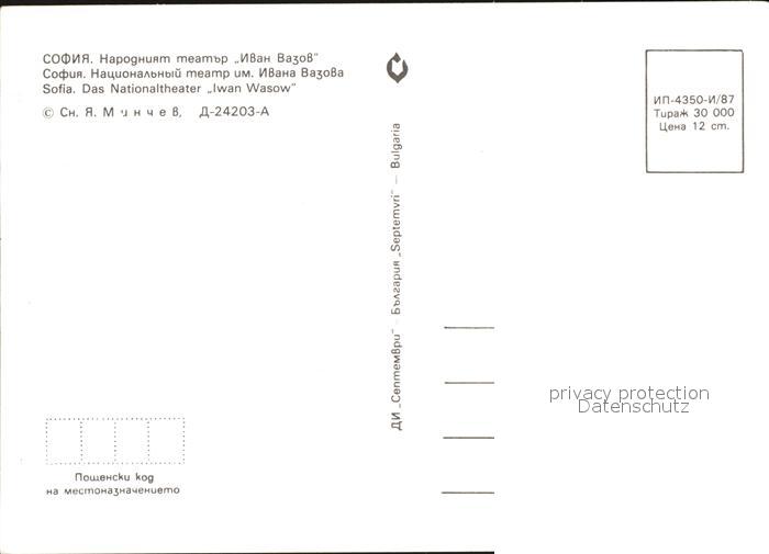 Sofia Sophia Das Nationaltheater Iwan Wasow postalisch nicht gelaufen Erhaltung siehe scans
