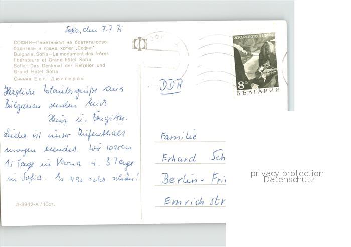 old postcard Sofia Sophia Denkmal postalisch gelaufen Erhaltung siehe scans