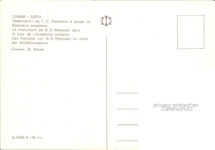 Sofia Sophia Denkmal GS Rakovski Statue Hof der Militaerakademie postalisch nicht gelaufen Erhaltung siehe scans