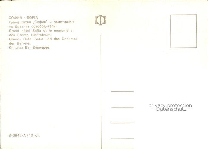 Sofia Sophia Grand Hotel Sofia Denkmal Befreier postalisch nicht gelaufen Erhaltung siehe scans
