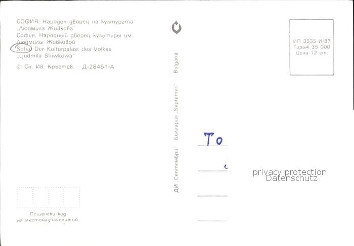 Sofia Sophia Kulturpalast postalisch nicht gelaufen Erhaltung siehe scans