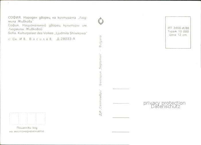 Sofia Sophia Kulturpalast des Volkes Ljudmila Shiwkowa postalisch nicht gelaufen Erhaltung siehe scans [LiesaD40]