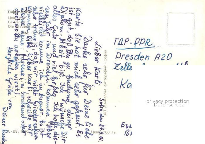 old postcard Sofia Sophia Stadtmitte postalisch gelaufen Erhaltung siehe scans [FriedD77]