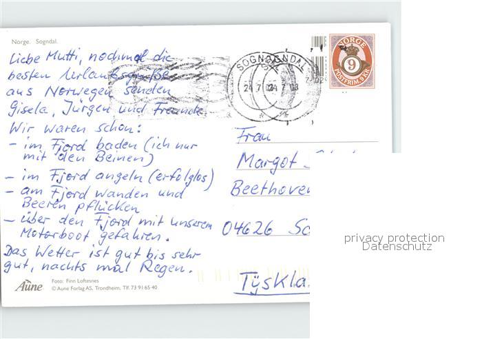 old postcard Sogndal Fliegeraufnahme postalisch gelaufen Erhaltung siehe scans