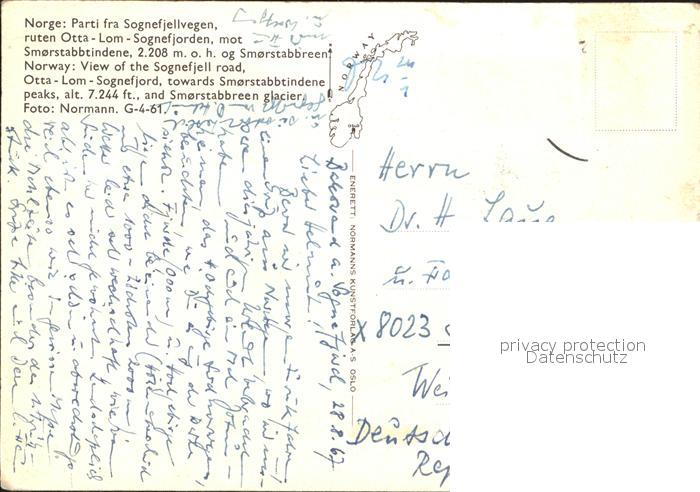 old postcard Sogndal Sognefjellsveien postalisch gelaufen Erhaltung siehe scans