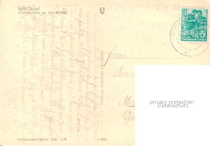 73295749 alte Postkarte Sohl Bad Elster Erholungsheim der Inneren Mission postalisch gelaufen Erhaltung siehe scans [PaolaD17] KatCode: 11110014178050