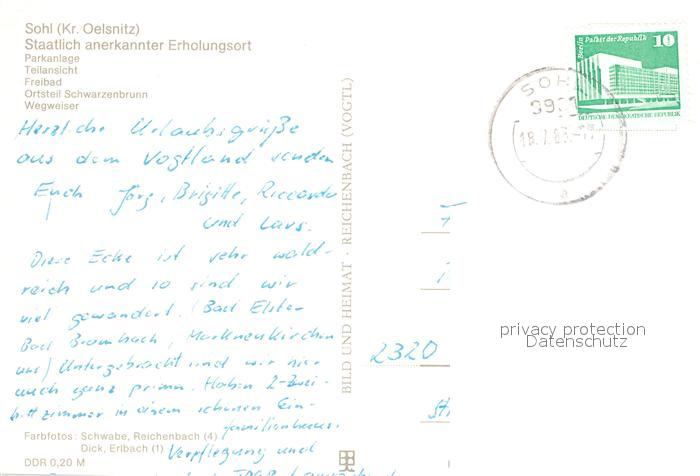73572064 alte Postkarte Sohl Bad Elster Parkanlage Teilansicht Freibad OT Schwarzenbrunn Wegweiser postalisch gelaufen Erhaltung siehe scans [WerneD78] KatCode: 11110014178050
