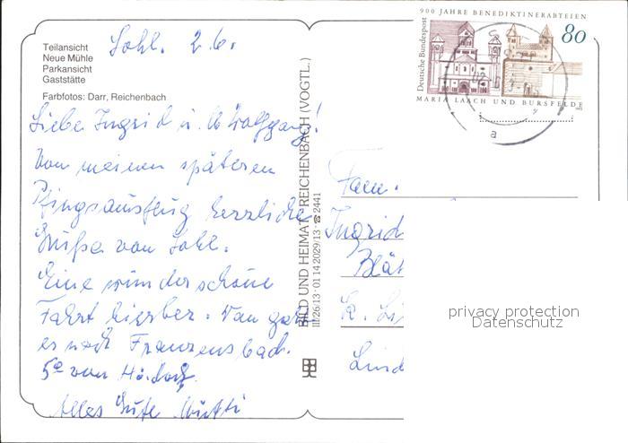 72358338 alte Postkarte Sohl Bad Elster Teilansicht Neue Muehle Park Gaststaette postalisch gelaufen Erhaltung siehe scans KatCode: 11110014178050