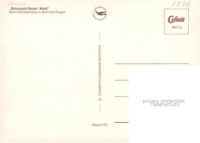 73868508 Sohl Regen Niederbayern Altes Waldlerhaus postalisch nicht gelaufen Erhaltung siehe scans [WerneD78] KatCode: 11110009276143