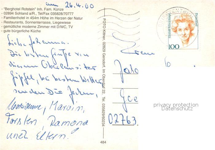 73776621 alte Postkarte Sohland Rotstein Fliegeraufnahme Berghotel Rotstein postalisch gelaufen Erhaltung siehe scans [LiesaD40] KatCode: 11110014284380