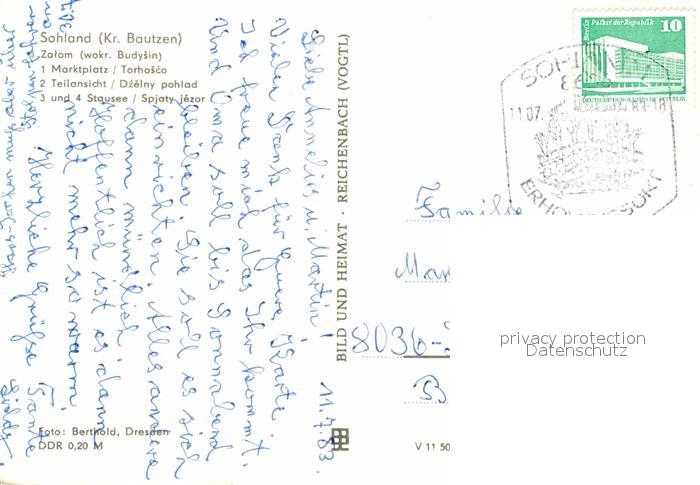 72634255 alte Postkarte Sohland Spree Marktplatz Teilansicht Stausee postalisch gelaufen Erhaltung siehe scans [AndreD76] KatCode: 11110014272340