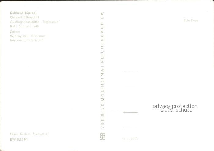 72054040 Sohland Spree OT Ellersdorf Ausflugsgaststaette Jaegersruh postalisch nicht gelaufen Erhaltung siehe scans KatCode: 11110014272340