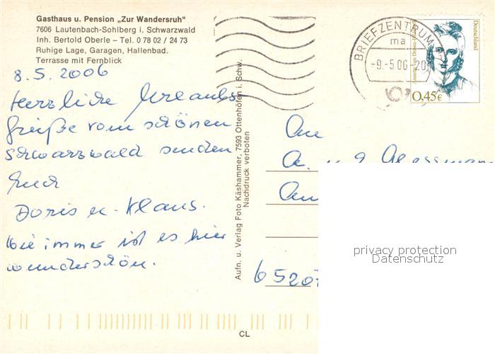 73616408 alte Postkarte Sohlberg Gasthaus Pension Zur Wandersruh postalisch gelaufen Erhaltung siehe scans [WerneD78] KatCode: 11110008317102
