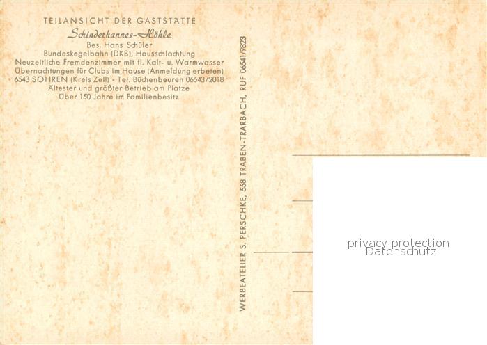 73641784 Sohren Gaststaette Schinderhannes Hoehle Bauernschaenke postalisch nicht gelaufen Erhaltung siehe scans [FriedD77] KatCode: 11110007140145