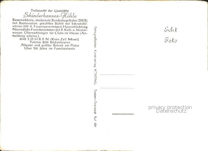72137704 Sohren Restaurant Schinderhannes Hoehle postalisch nicht gelaufen Erhaltung siehe scans KatCode: 11110007140145