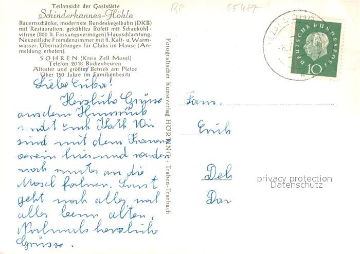 33659987 alte Postkarte Sohren Schinderhannes Hoehle postalisch gelaufen Erhaltung siehe scans [WerneD78] KatCode: 11110007140145