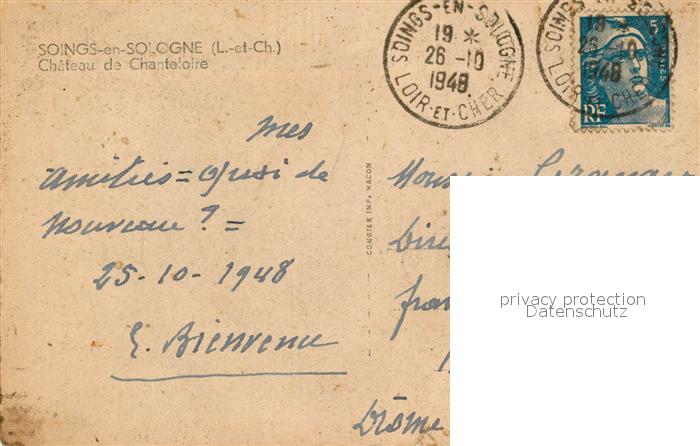 13546599 carte postale Soings-en-Sologne Chateau de Chanteloire Schloss postalisch gelaufen Erhaltung siehe scans [FriedD77] KatCode: 11170041341247